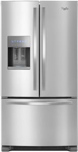 Organize foods for your family in this Whirlpool® French door refrigerator available in fingerprint-resistant stainless steel. A humidity-controlled double crisper and two-tier freezer storage provide plenty of room. Spillproof shelves help contain spills and for filtered water right at hand, this refrigerator features an exterior water dispenser with EveryDrop® ice and water filtration.Read More